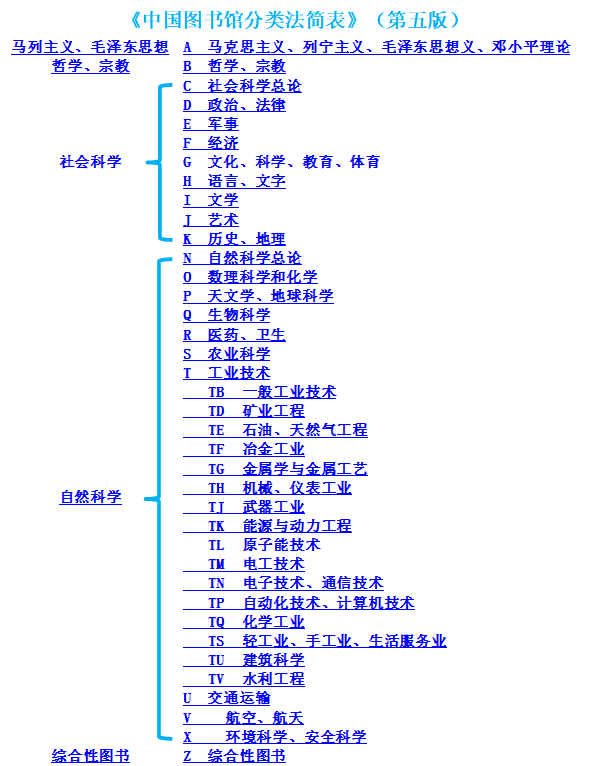 本馆图书根据《中图法》(第五版)进行分类排架,读者在查找图书时,可参考以下图书分类法: