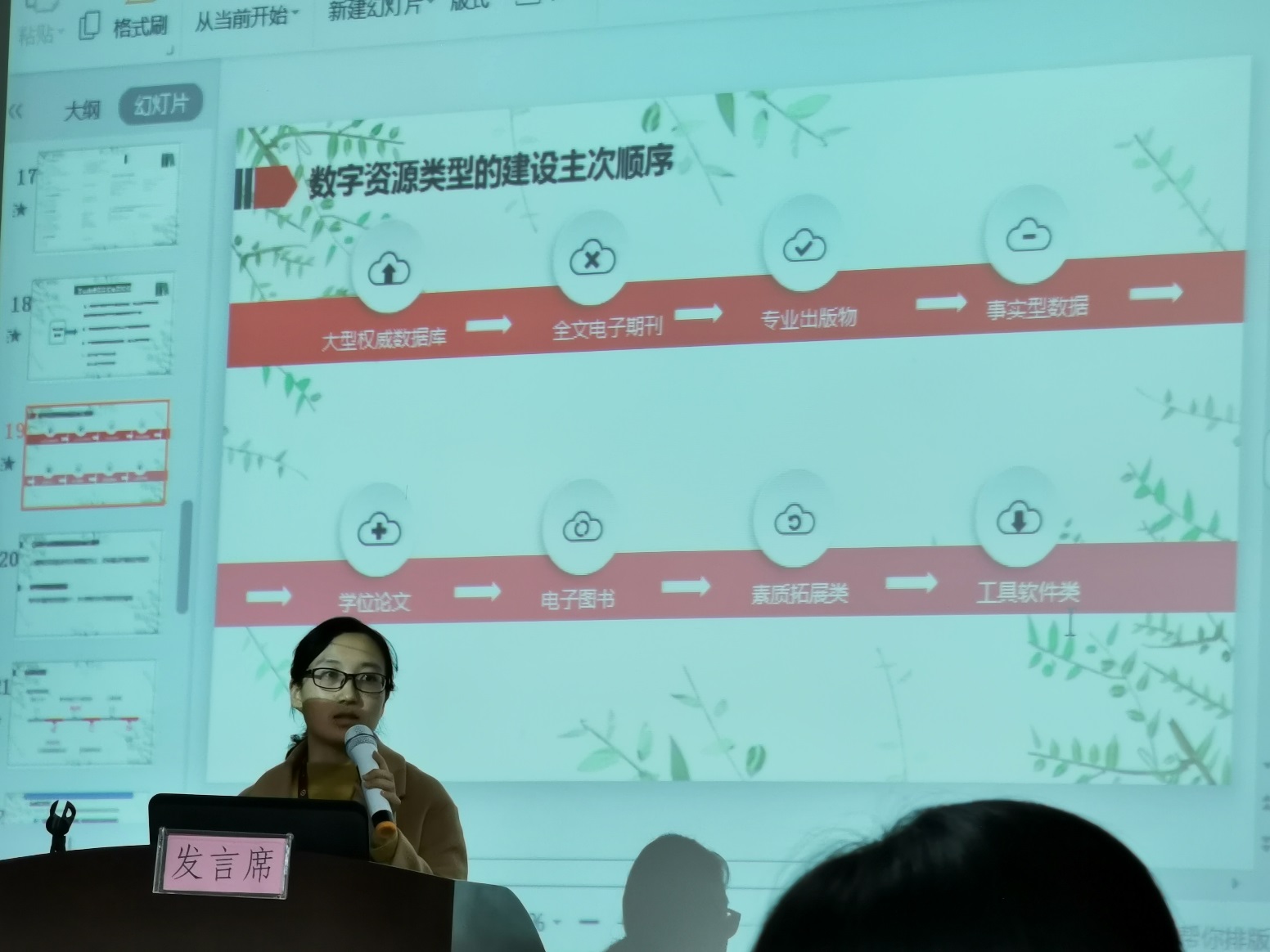 会议第二项议题为贵州高校图书馆采访编目工作交流会,由贵州高等学校图书馆工作指导委员会秘书长张伟云主持,邀请了来自五所大学的馆员进行馆情介绍和经验分享,分别是贵州财经大学图书馆资源建设部张达娜老师《文献资源采访工作交流》、铜仁学院图书馆李春艳老师《从“独享”到“三响”》、黔南师范学院图书馆采编部主任《图书馆采编工作简介》、贵州商学院图书馆傅师英《采编工作汇报》、贵州医科大学图书馆汪其英《贵州医科大学馆藏采访报告》。