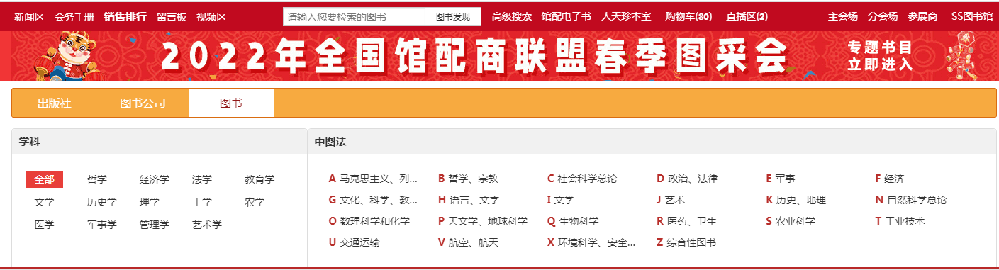 2.2、图书分会场:根据图书的中图法分类及学科分类展示各类图书,直接点击分类即可进入选书界面