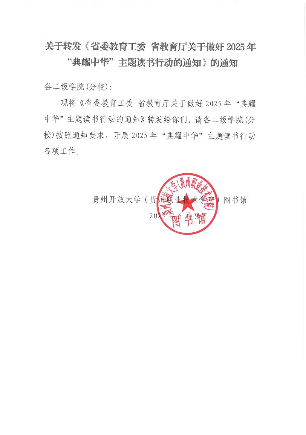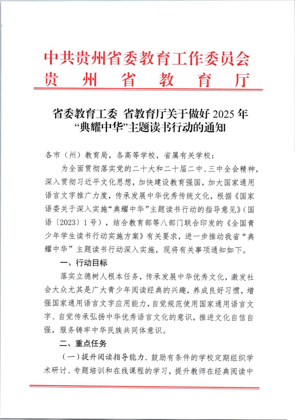 关于转发《省委教育工委 省教育厅关于做好2025年“典耀中华”主题读书行动的通知》的通知