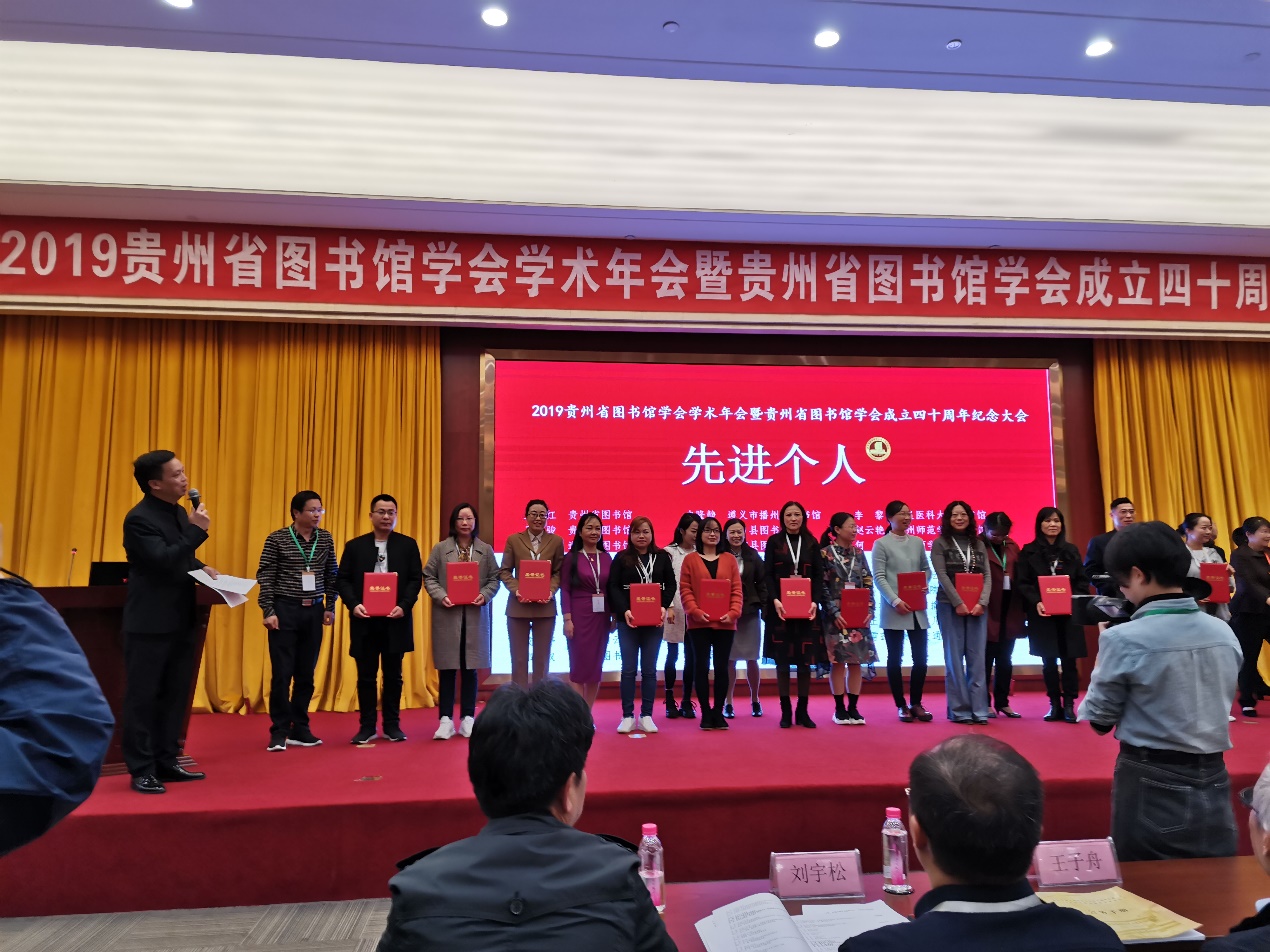 2019贵州省图书馆学会学术年会暨贵州省图书馆学会成立四十周年纪念大会于20191031日-111日在都匀举行,大会由贵州省图书馆学会主办,参会人员有第九届贵州省图书馆学会理事、分支机构及专委会主任及副主任、学术研究委员会委员、征文获奖及入选作者、受表彰的单位代表及个人等140余人,我校图书馆也派出获表彰的馆员赖春花参会。