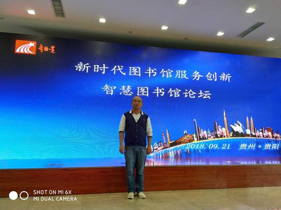 9月21日,我馆派馆员刘军参加由贵州省图书馆学会主办,贵州民族大学图书馆、贵阳孔学堂图书馆、贵州省图书馆学会教育培训委员会、贵州省图书人才培训中心承办,超星集团贵州分公司协办的“新时代图书馆服务创新:智慧图书馆论坛”。