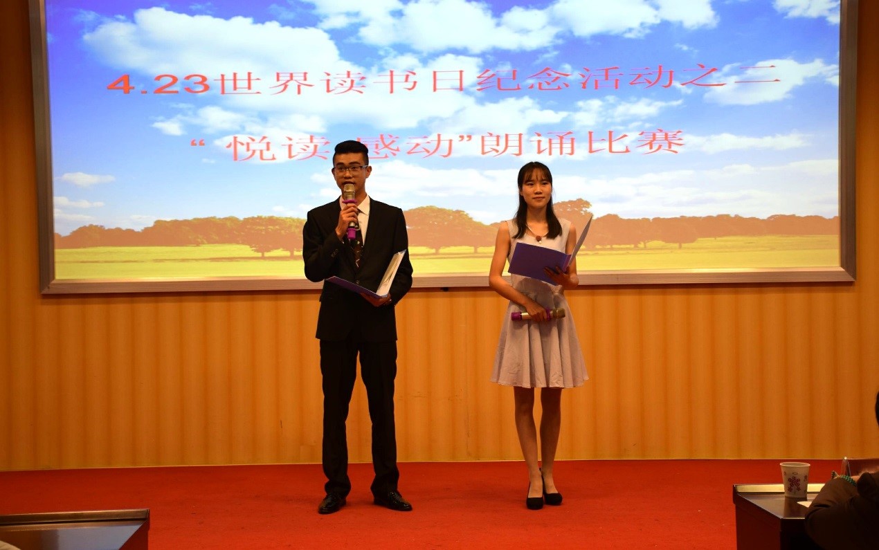 为纪念第二十二个“世界读书日”,营造富有激情、富有青春气息的校园文化氛围,提高学生的文化素质和文化自信,4月24日下午,图书馆、团委在学术报告厅举办以“悦读•感动”为主题朗诵比赛。