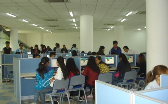 ▼参观图书馆电子阅览室,并体验方便快捷的馆藏资源信息查询