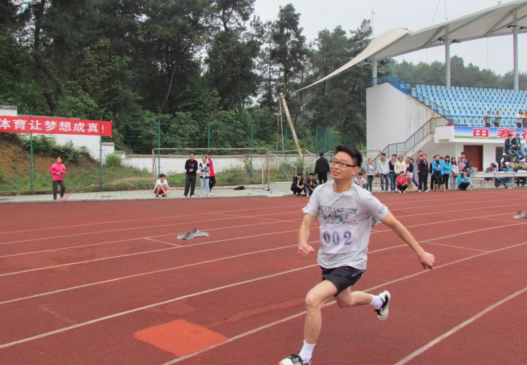 ▲图书馆技术部李光华老师参加教工甲组男子4X100米径赛获团体一等奖