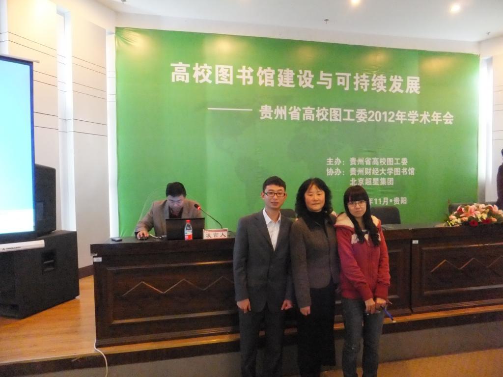 2012年11月11日,贵州省高校图工委2012年学术年会在贵州财经大学顺利召开。贵州广播电视大学图书馆馆长郭云莹、馆员李光华、阮中元参加了这次会议。