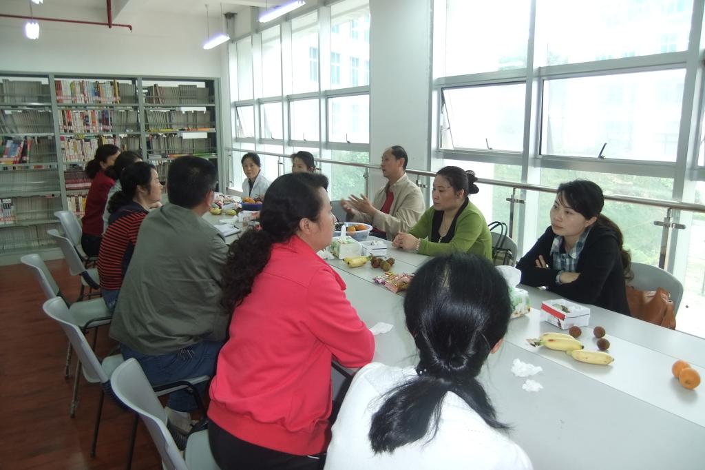 教育工会同志与“职工书屋”管理人员就如何活跃“职工书屋”活动展开讨论