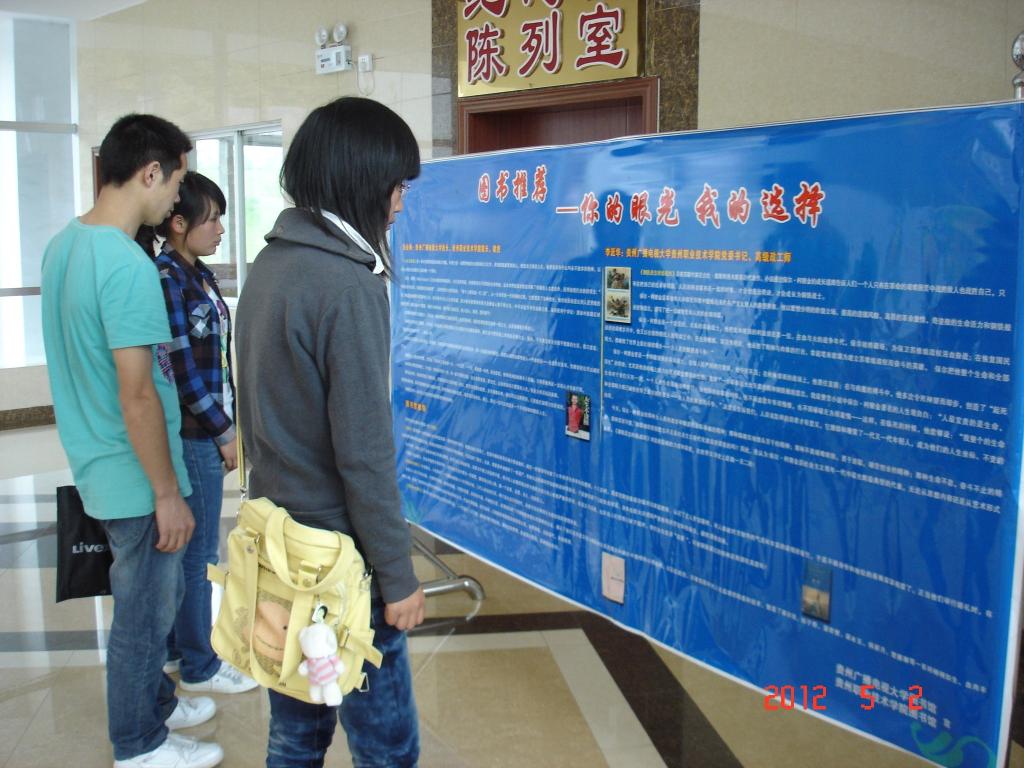 2012年4月23日第17个世界读书日,贵州广播电视大学图书馆在校园内拉开了“点燃读书激情·共建书香校园”系列读书周活动序幕。