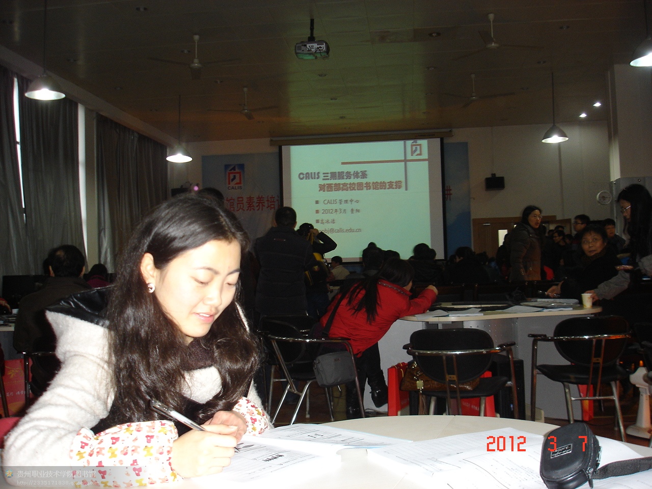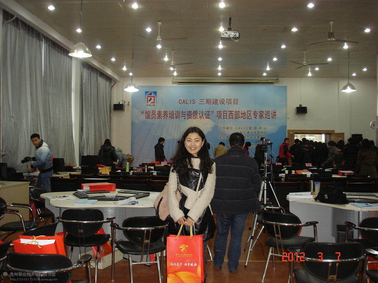 2012年3月8日至3月9日,贵州广播电视大学图书馆派出馆员梁逶、刘莉娜、李光华参加在贵州师范大学图书馆举办的CALIS三期建设项目“馆员素养培训与资格认证”项目西部地区专家巡讲。