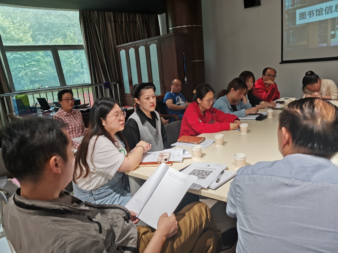 随后,流通部、采编部和综合部负责人分别对各部门提供的资源和服务作了介绍,就大家比较关心的借阅规则、图书采购、数字资源利用等问题进行了重点介绍,并发放《贵州开放大学(贵州职业技术学院)图书馆文献资源采购管理办法(讨论稿)》征求意见。
