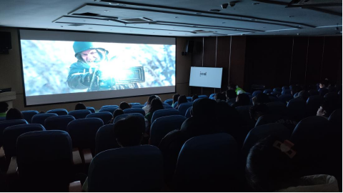 座谈会结束后,图书馆为参加座谈会的读者播放了一场爱国主题电影。